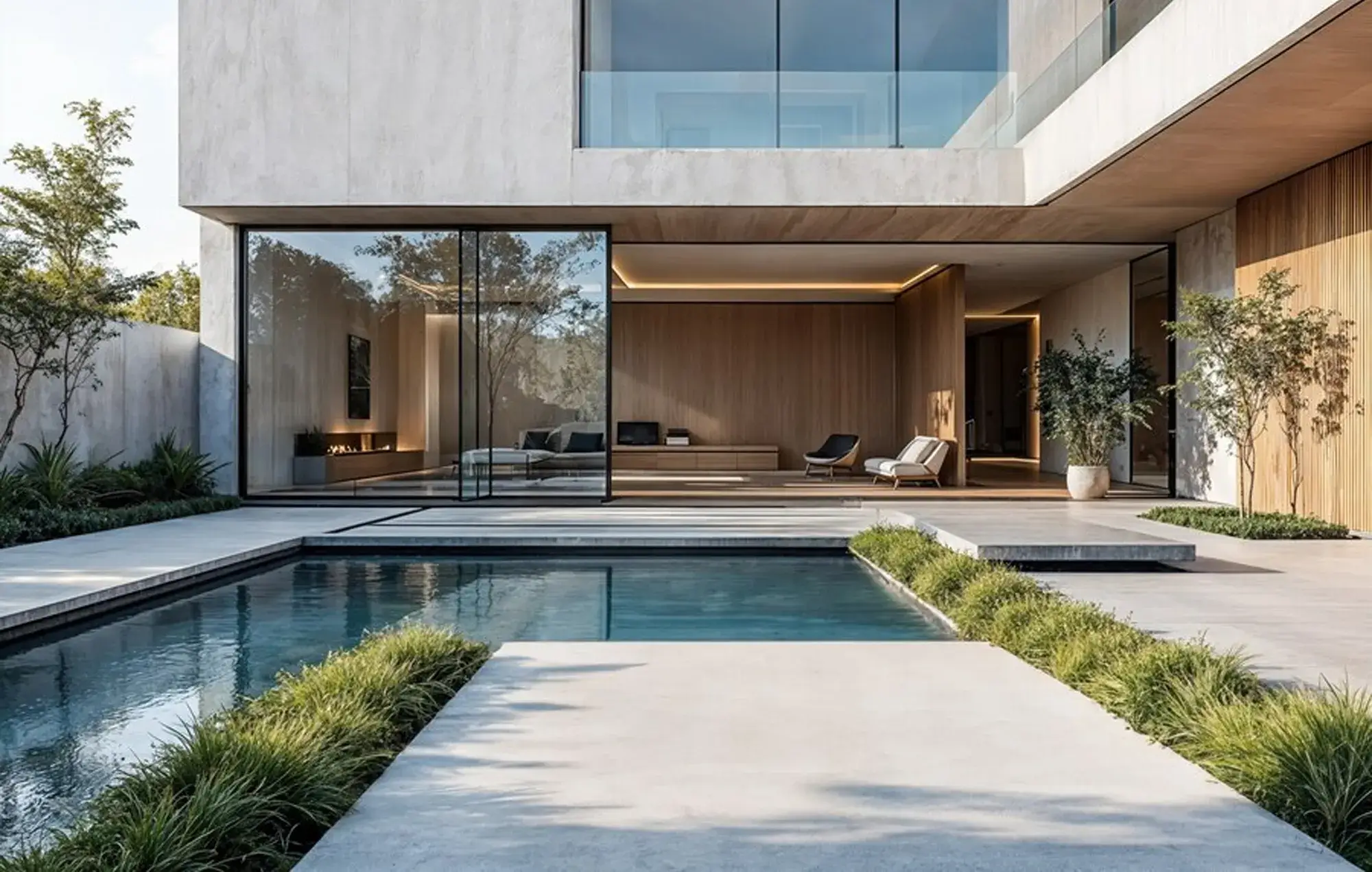 A heated 25-metre lap pool set in the central pavilion garden.